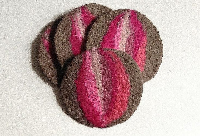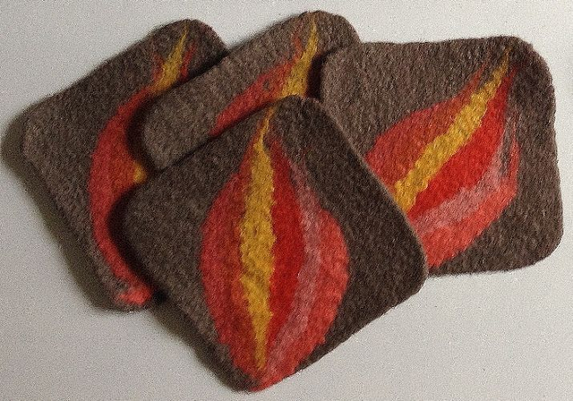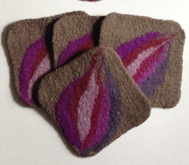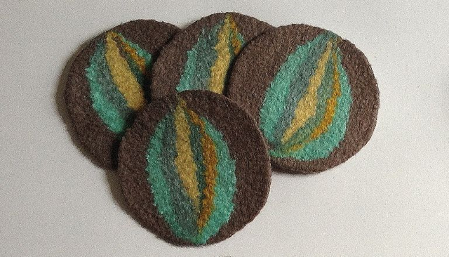 Hand Felted Coasters with Abstract Flower Motif