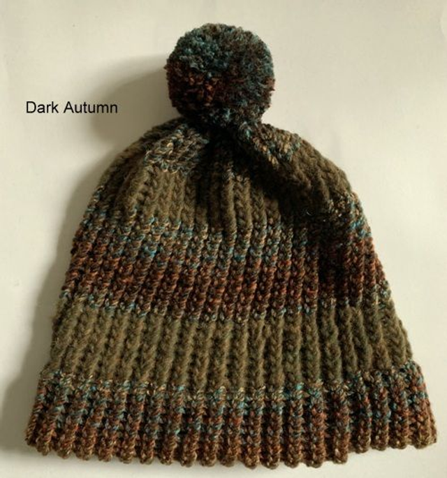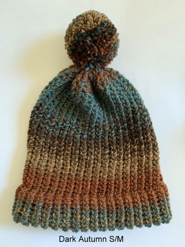 - M/L: Dark autumn tones in a soft acrylic and cashmere blend — ideal for those with fuller hair