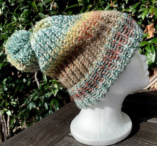 Hand Knitted Beanie Hat with Pom Pom in Autumn Colors - S/M, M/L
