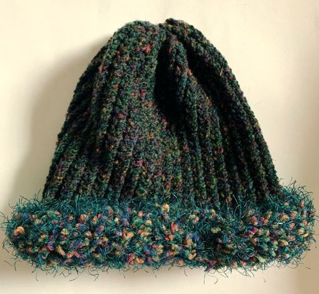 Hand Knitted Beanie Hat with Rolled Brim in Green - S/M