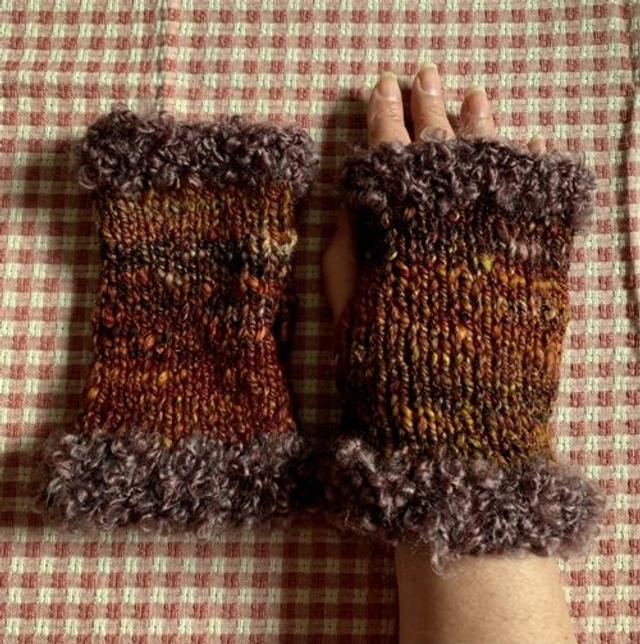 Complete your winter look with these cozy hand knitted hand warmers, designed to pair beautifully handwoven scarf. These fingerless gloves offer warmth, softness, and a touch of sparkle.