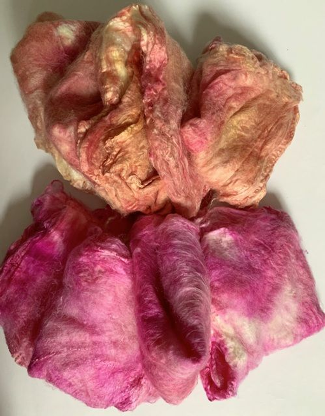 Mulberry Silk Hankies, Magenta, Hand Dyed A Grade Mawata Silk Hankies, Bombyx Silk, Spinning, Felting, Textile Art, Paper Making