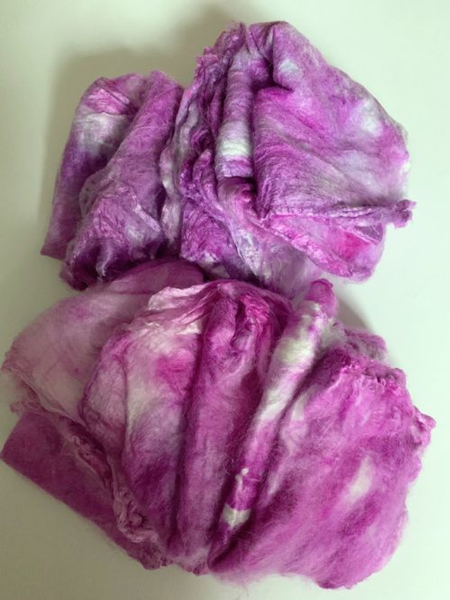 Mulberry Silk Hankies, Purple/Magenta, Hand Dyed A Grade Mawata Silk Hankies, Bombyx Silk, Spinning, Felting, Textile Art, Paper Making